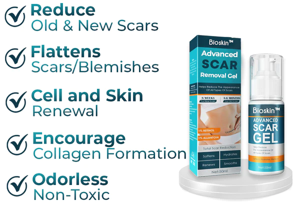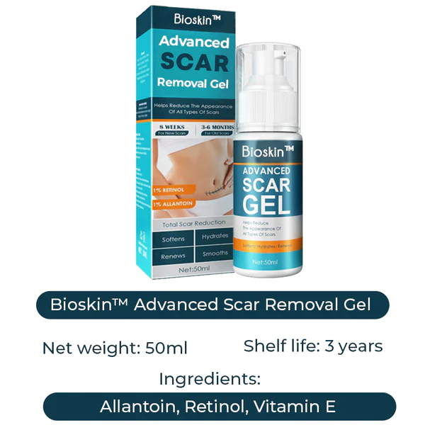Bioskin™ Advanced Scar Removal Gel improves the look of the skin and helps it heal by promoting the growth of new tissue by lowering pigment and scar tissue. This speeds up the creation of new skin cells and minimizes discomfort. It improves the health of a person's skin.
