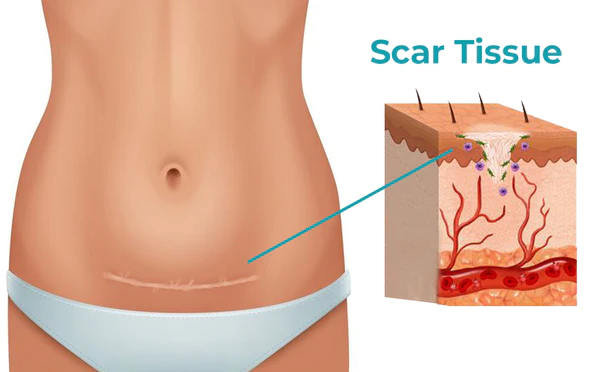 A scar is the body's natural way of healing and replacing lost or damaged skin. A scar is usually composed of fibrous tissue. Scars may be formed for many different reasons, including as a result of infections, surgery, injuries, or inflammation of tissue.